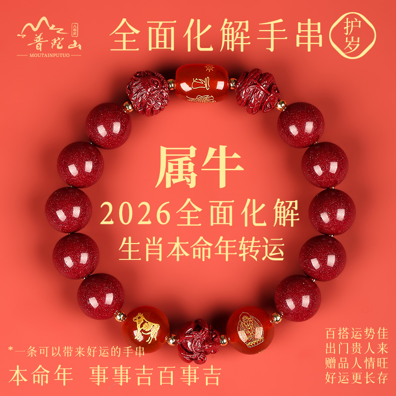 普陀山2026太岁朱砂手串女款三合六合属牛本命年生肖牛手链男礼物