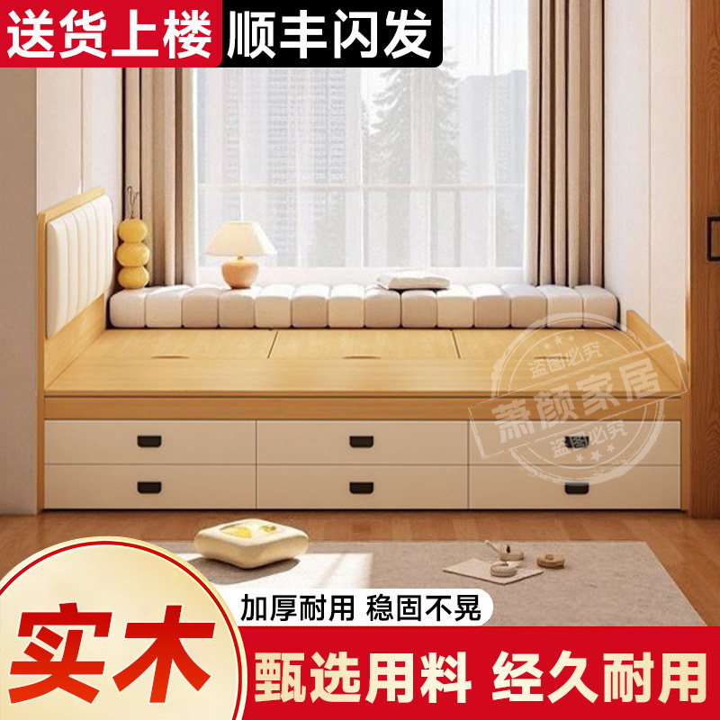 无床头箱体侧抽家用床适合小房间的床储物床实木榻榻米可定制尺寸