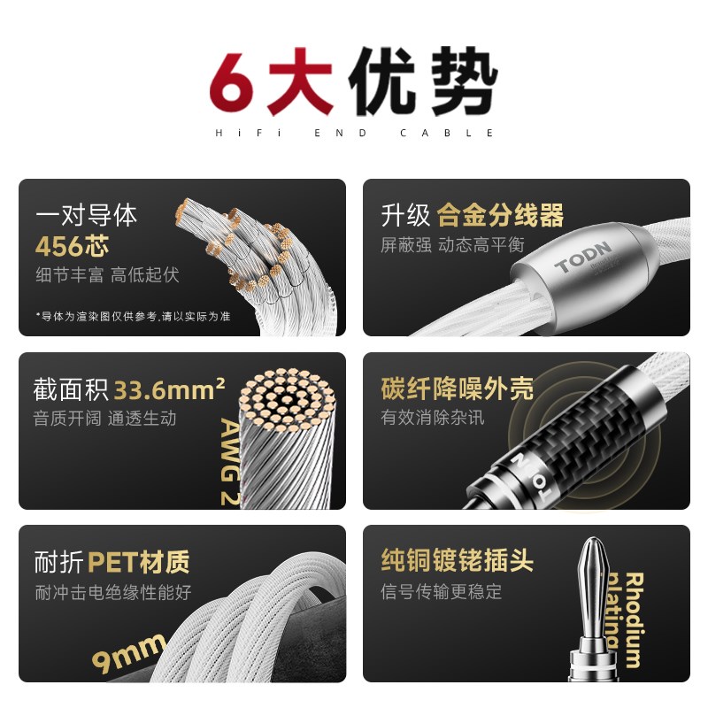 丹麦同顿 7N单晶铜镀银主音箱喇叭线 功放音响连接线镀铑碳纤降噪