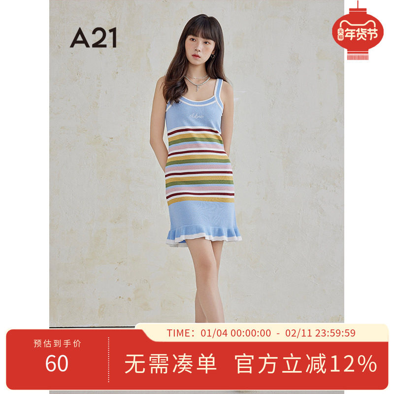 暴走高仙女百搭条纹针织连衣裙春秋修身度包臀显瘦遮胯吊带长裙子
