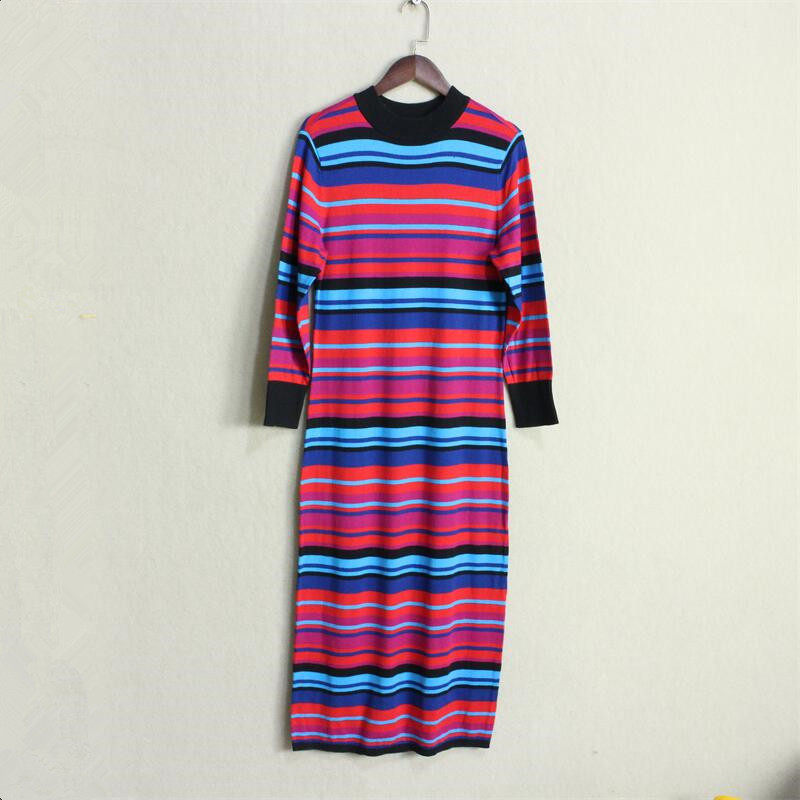 秋冬季帅气条纹撞色高领包臀裙2025新款时尚修身收腰针织连衣裙