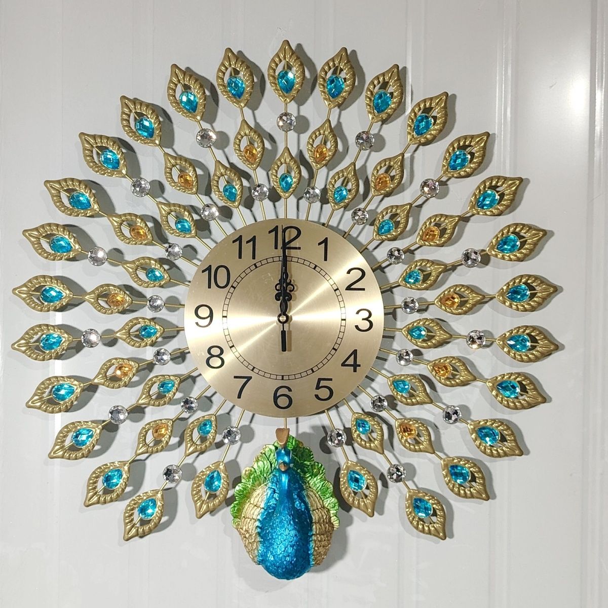 欧式孔雀挂钟客厅艺术钟表创意时尚静音挂表家用时钟壁挂北欧挂表