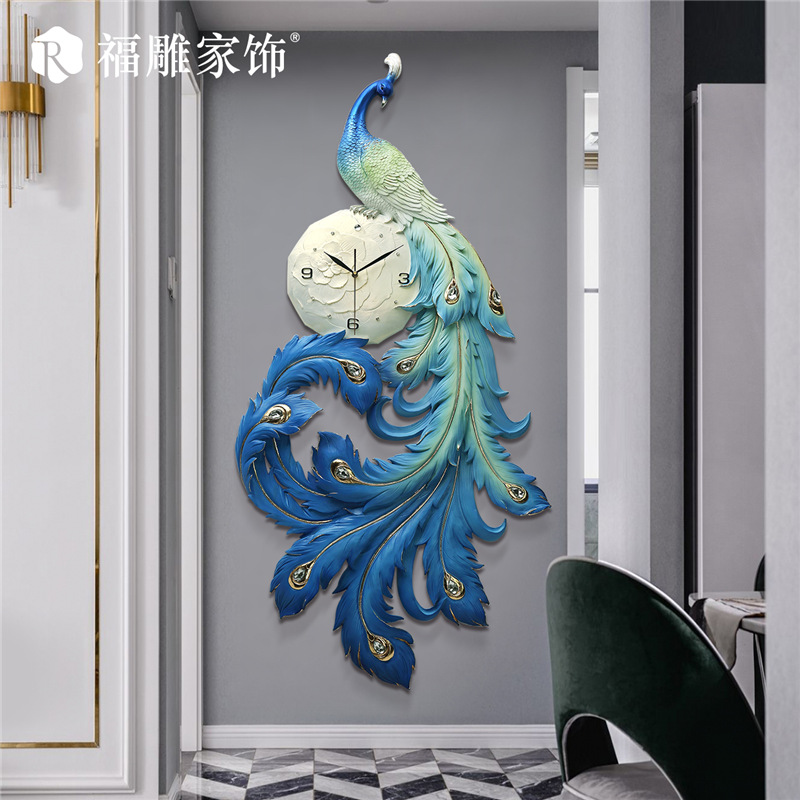 客厅挂钟大气孔雀电视背景墙钟表时尚艺术壁挂钟沙发立体创意挂表