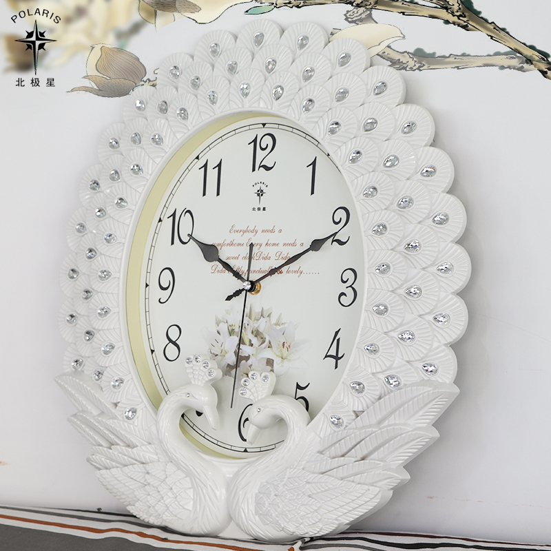 恋妆孔雀挂钟卧室酒店创意钟表北欧装饰钟家用客厅时钟静音石英钟