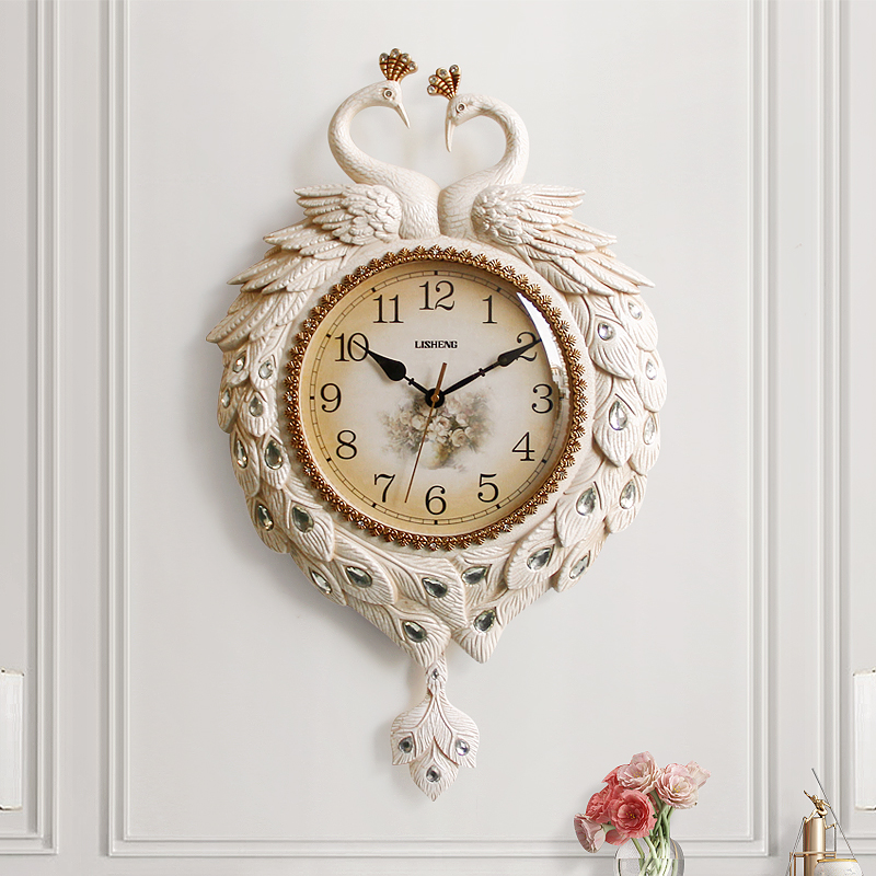 恋妆孔雀挂钟客厅个性欧式创意时钟家用时尚静音装饰大气石英钟表