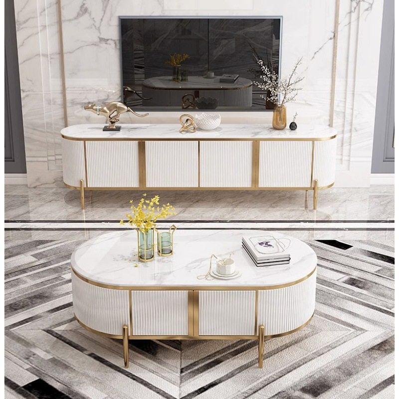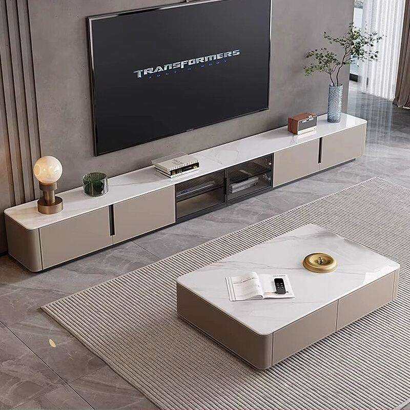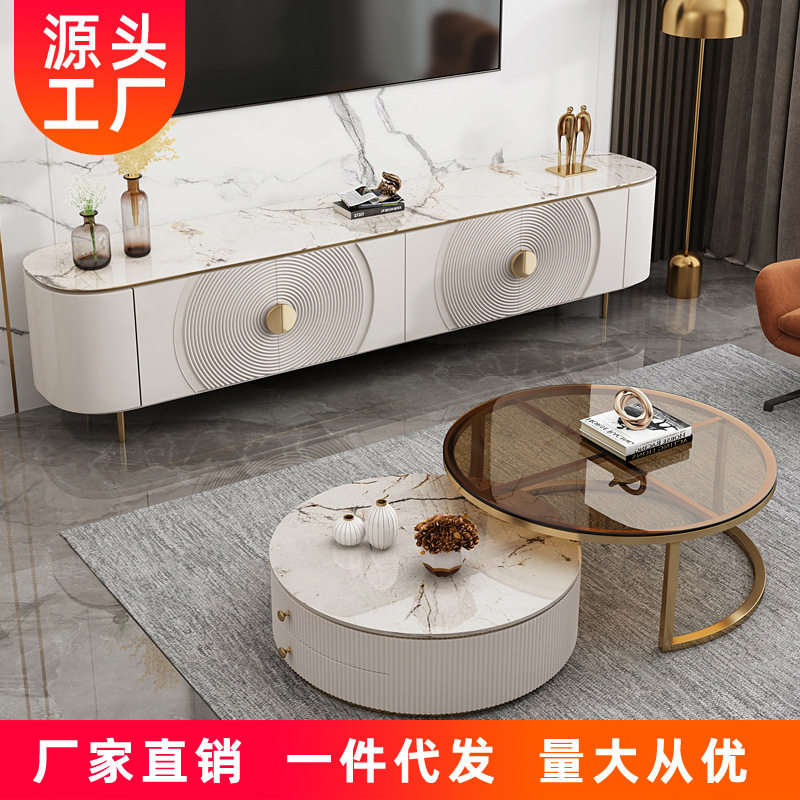 2025新款微晶石实木轻奢电视柜茶几组合岩板现代简约客厅落地烤漆
