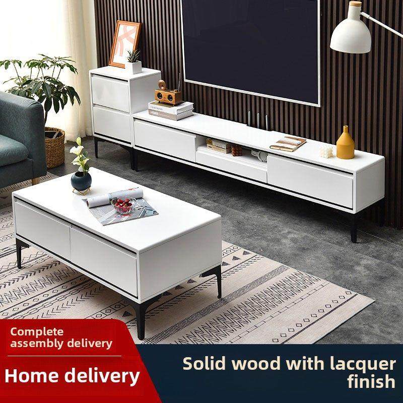 实木小户型烤漆电视柜茶几组合轻奢客厅简约现代落地柜新款窄意式