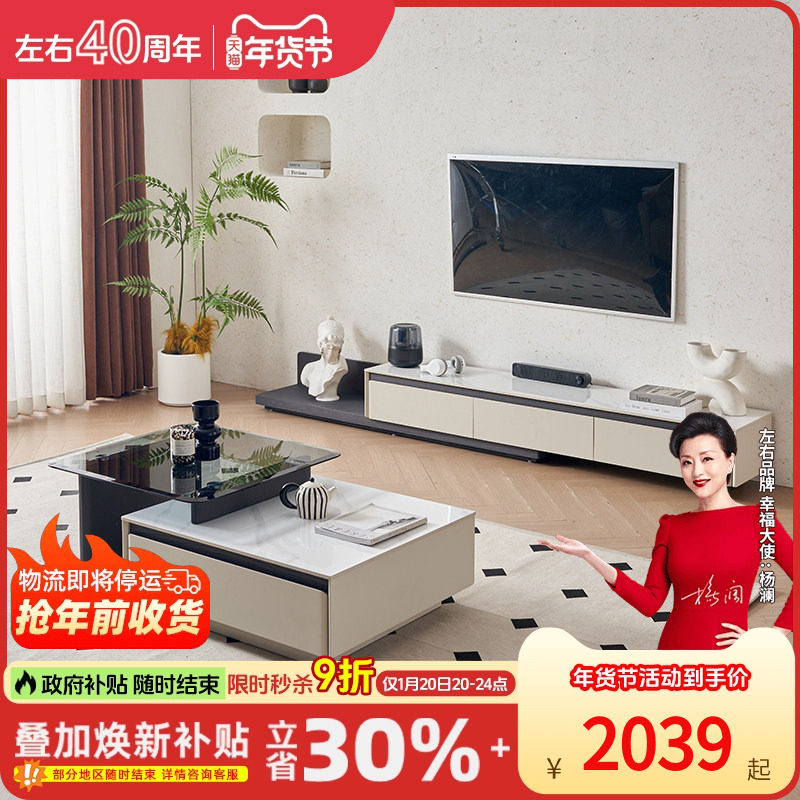 左右实木烤漆电视柜茶几组合客厅家用2026新款高级感岩板DCJ7008