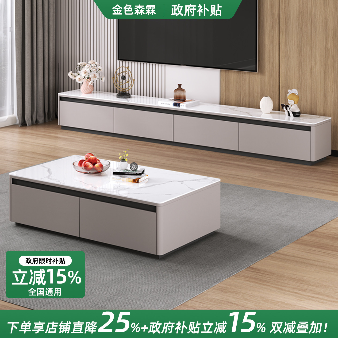 岩板电视机柜客厅家用2026新款小户型实木烤漆落地茶几电视柜组合