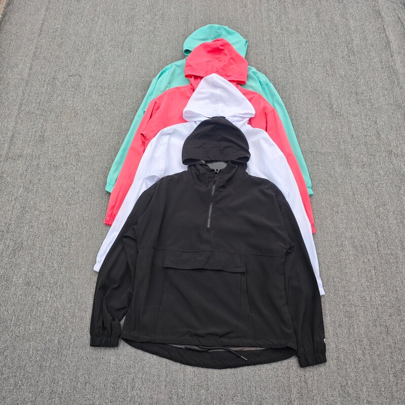 欧美春秋百搭防风晒防紫外线携带轻便户外休闲半拉链连帽薄外套女