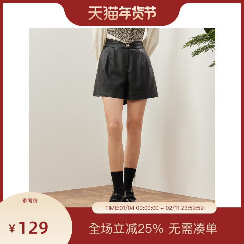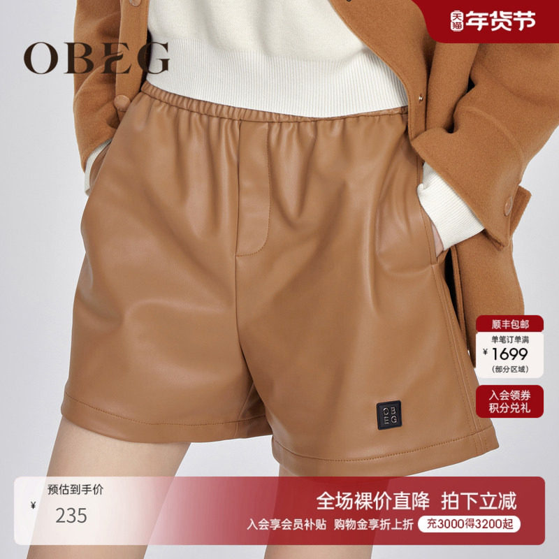 OBEG欧碧倩简约a字高腰PU皮短裤冬季时髦帅气10444051