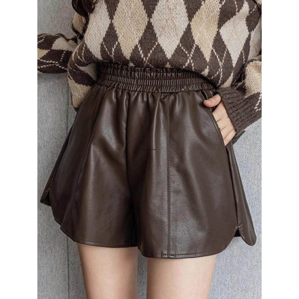 高腰皮短裤女秋冬2025新款爆款秋季宽松阔腿显瘦a字版外穿短皮裤