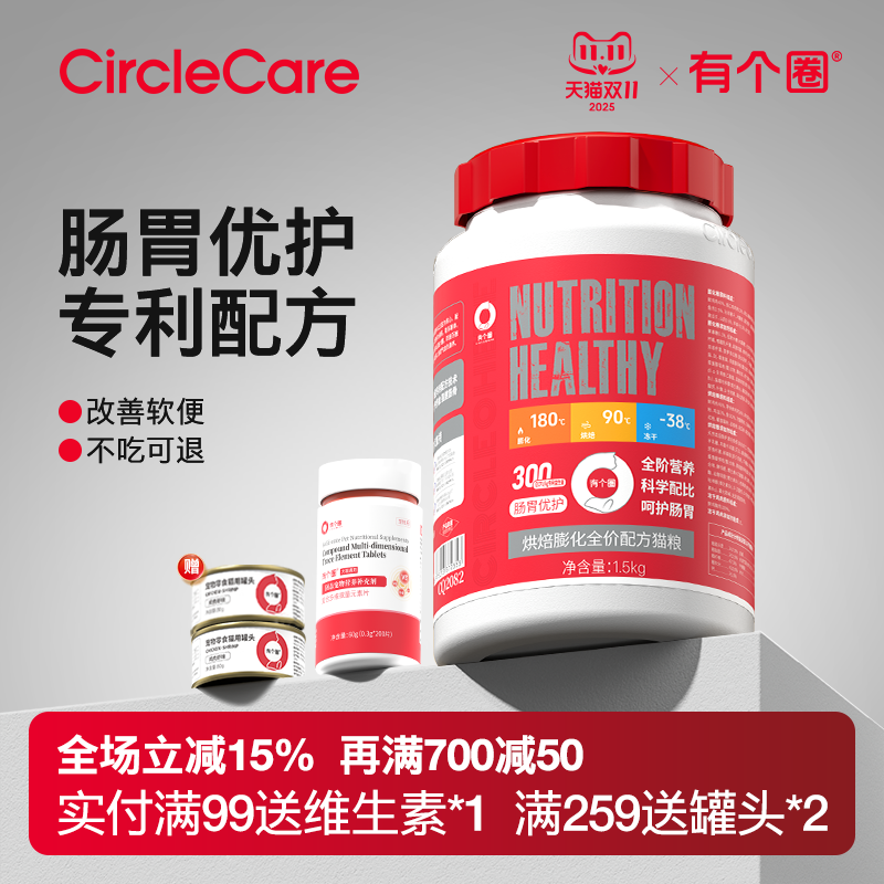 有个圈肠胃呵护全价猫粮益生菌成猫粮幼猫粮鲜肉高蛋白冻干猫主粮