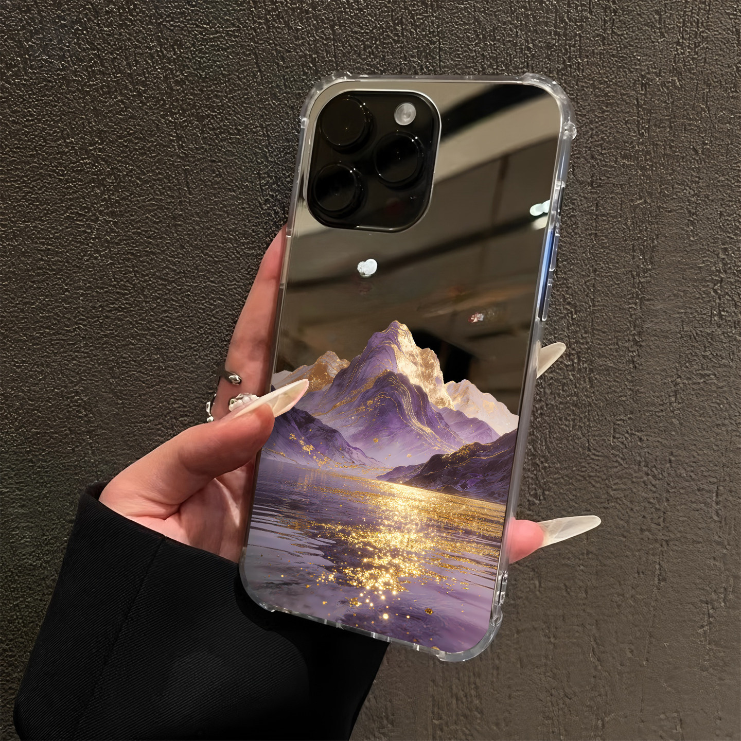 紫气金来流水生金适用iPhone17pro镜面16promax日照金山15Pro苹果14手机壳xsmax补妆13创意12简约7/8plus招财