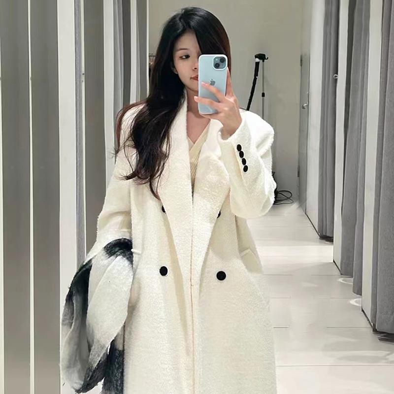 高个子加长款白色呢子大衣女2024秋冬韩系羊毛高级感超长毛呢外套