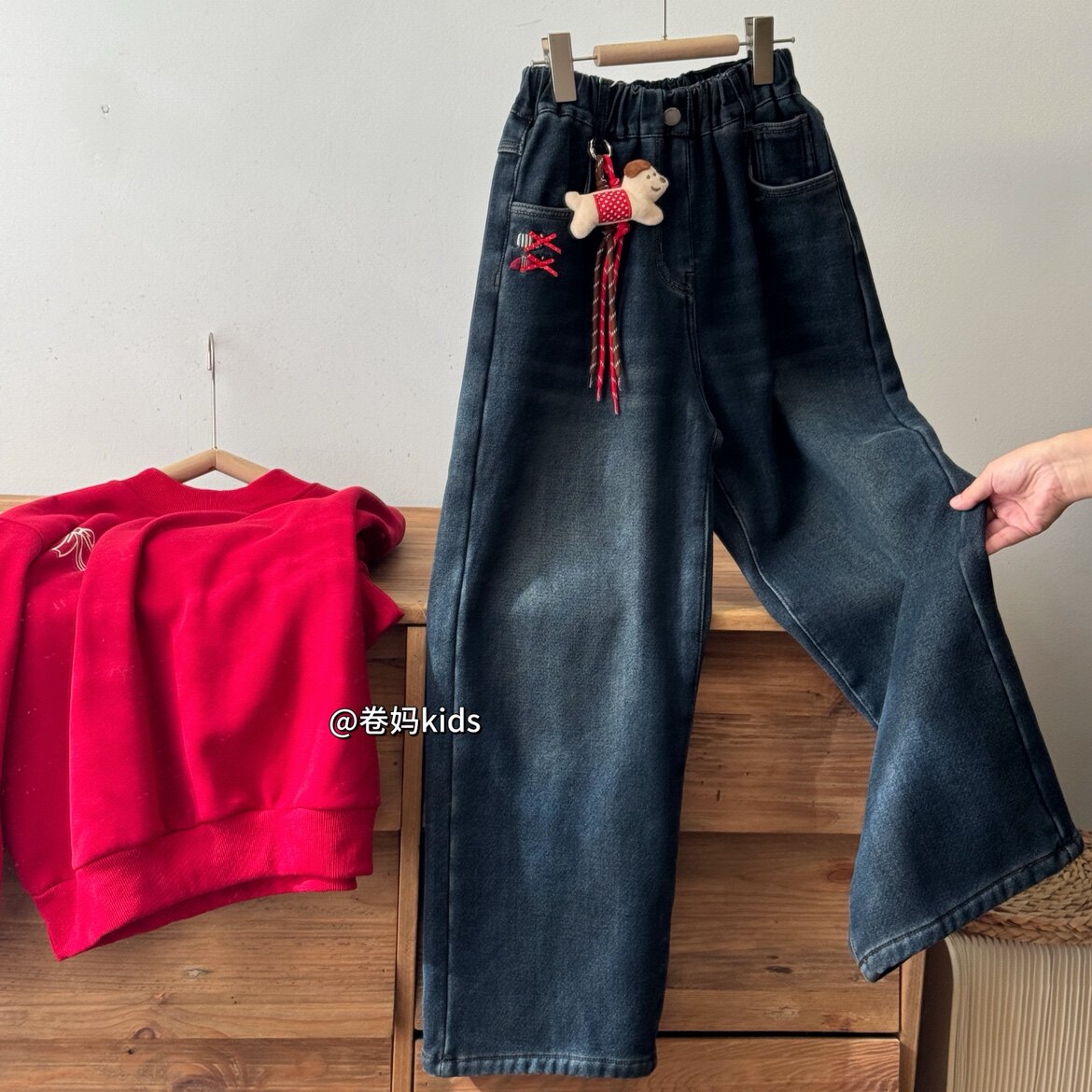 卷妈童品26冬季年款青少年女童韩系加绒加厚软牛仔裤休闲阔腿裤潮