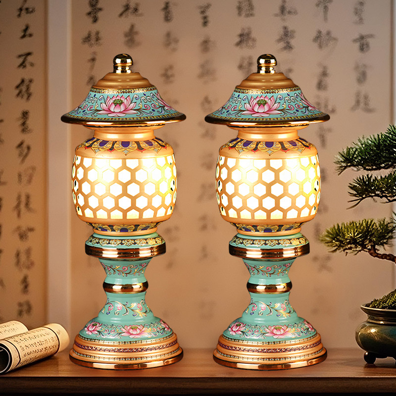 led珐琅彩神社长明灯插电莲花灯佛供灯佛灯财神爷佛前唐纹供佛灯