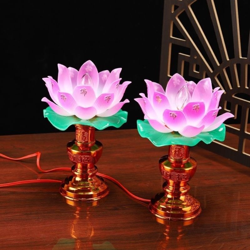 led莲花灯佛供灯佛灯佛前长明神灯观音供奉佛堂家用插电一对佛台
