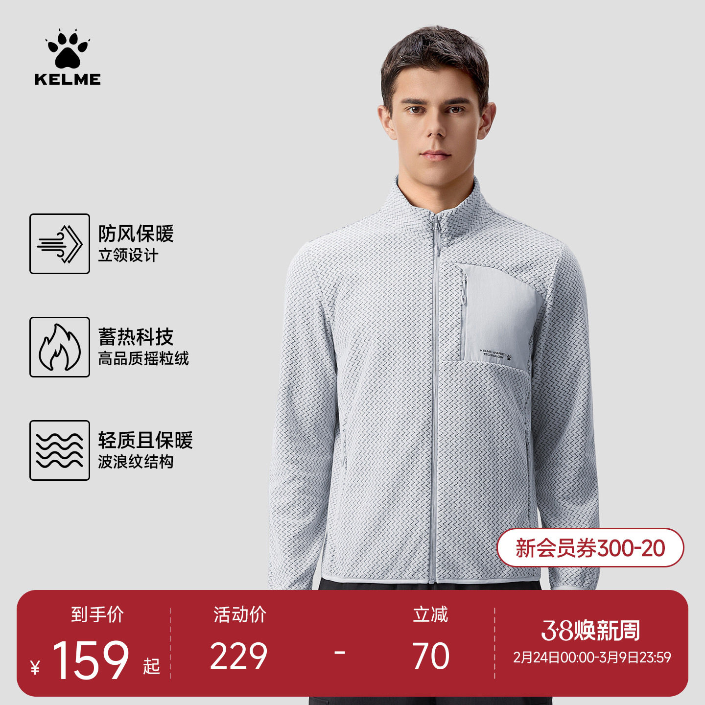 KELME卡尔美摇粒绒运动外套男冬针织立领户外夹克抓绒冲锋衣内胆