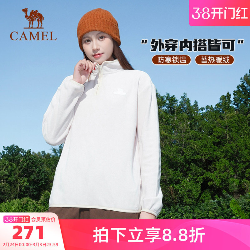 骆驼户外抓绒衣女半拉链立领抓绒衣男抗静电保暖摇粒绒抓绒衣外套