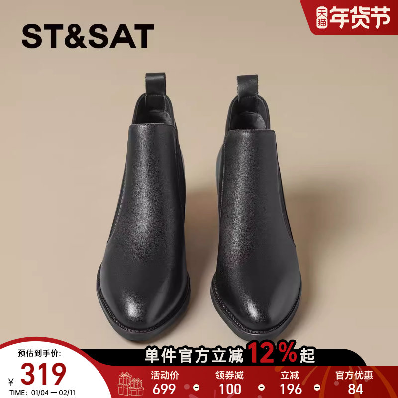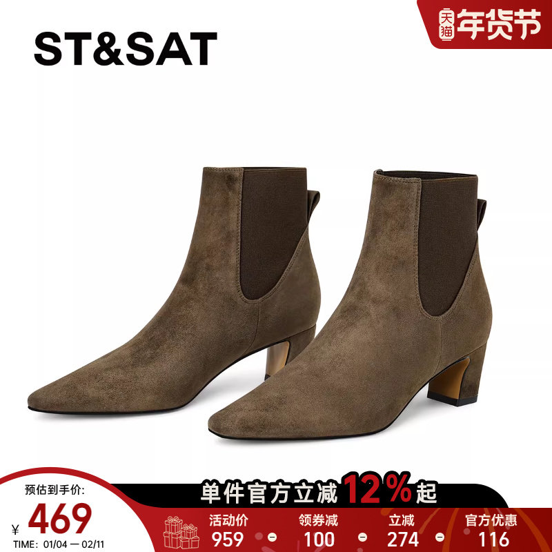 - 切尔西短靴女 粗跟
