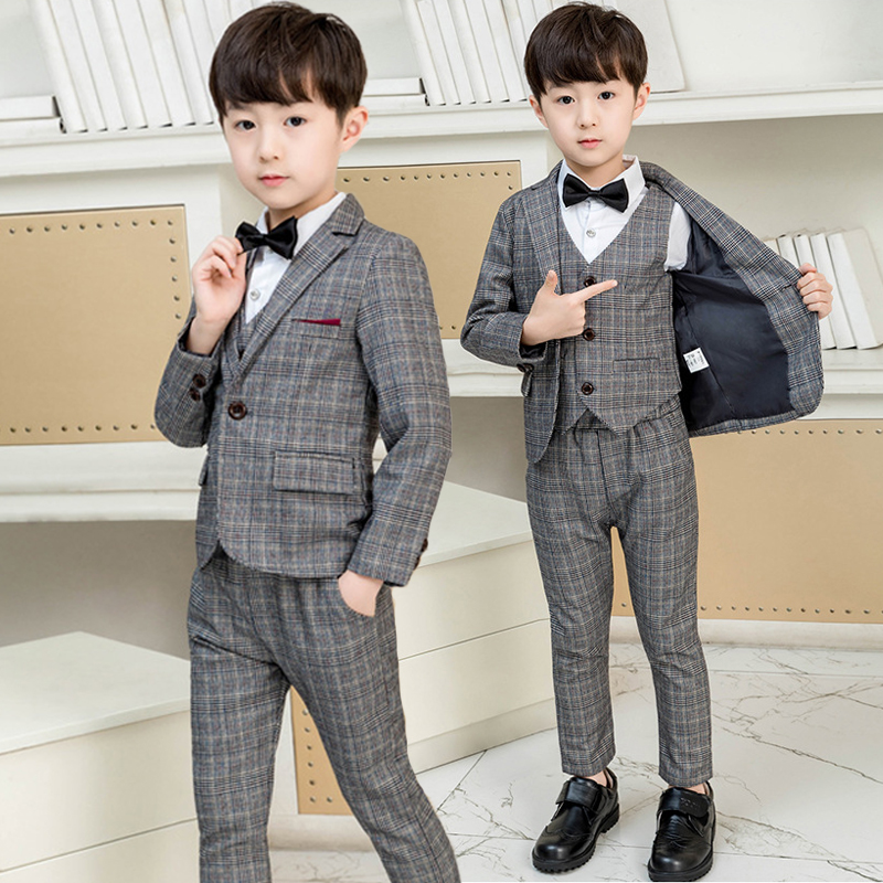儿童西装套装男童休闲西服韩版格子英伦风小孩主持人钢琴演出礼服