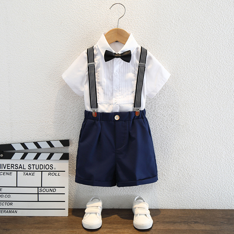 儿童西装套装周岁男宝宝礼服背带小主持人英伦风小孩生日宴会套装