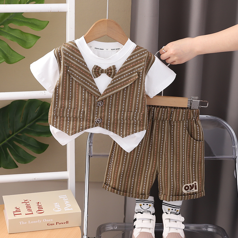 男童夏季西服马甲套装洋气帅宝宝夏装短袖婴儿周岁衣服小孩两件套