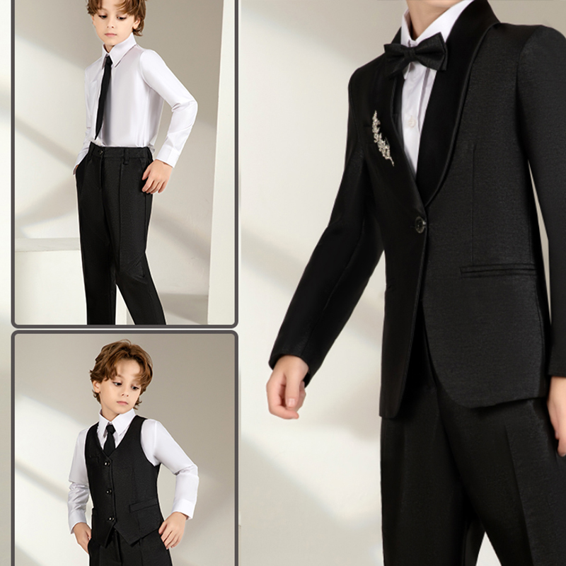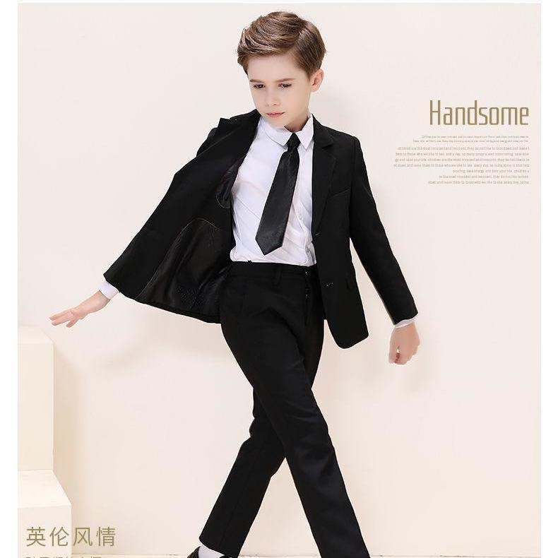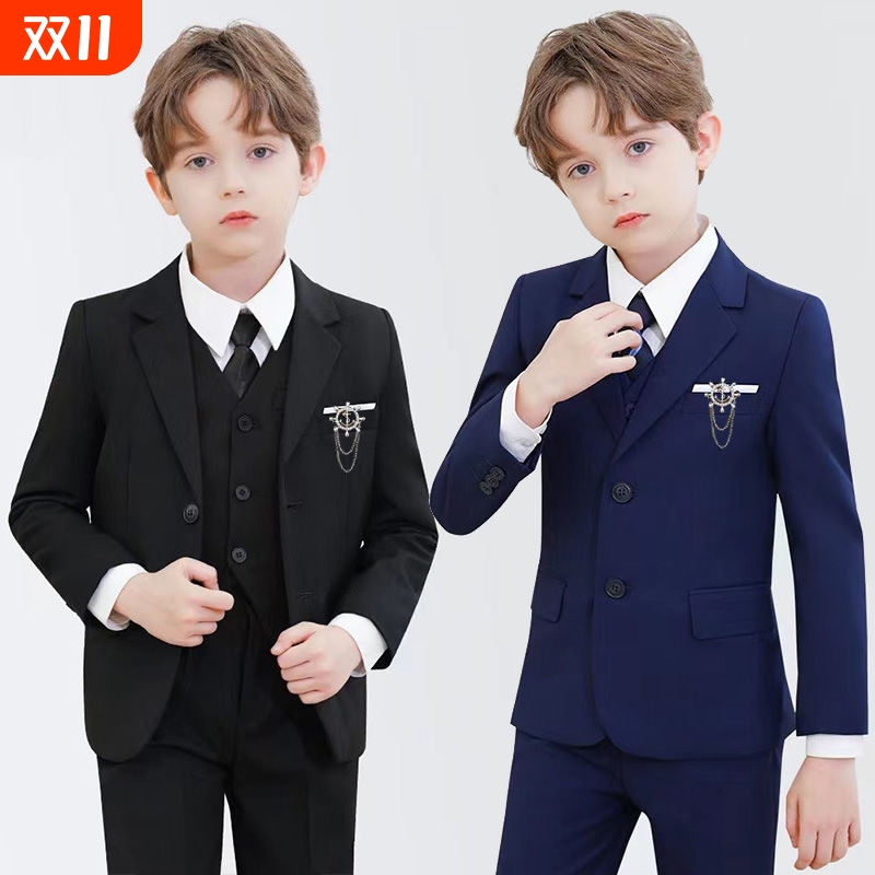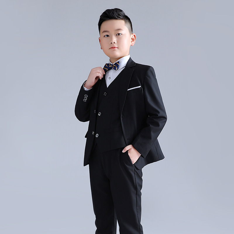 男童小孩黑色正装西装套装新款英伦西服三件套花童支持人表演礼服
