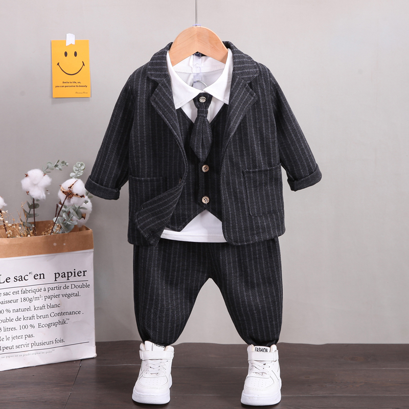 儿童西装1男童装套装2秋季西服三件套3宝宝英伦礼服4岁小孩春装潮