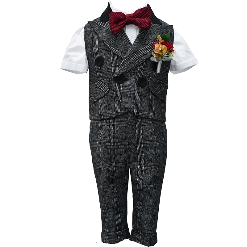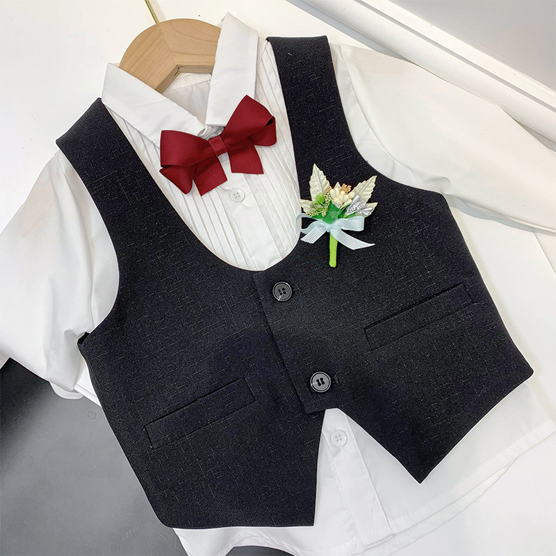 男童西装套装夏季儿童礼服英伦风小孩周岁生日西服马甲短袖小主持