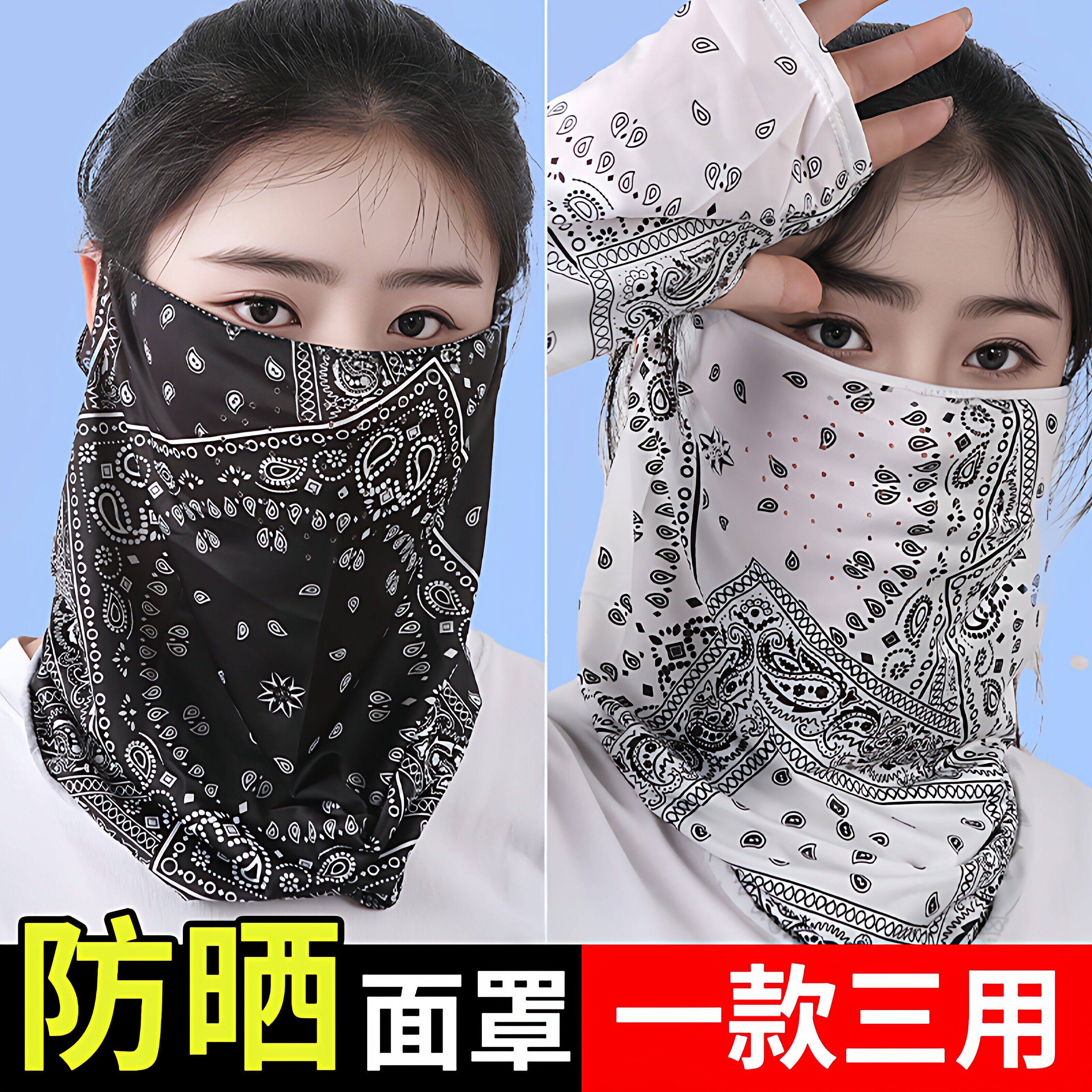 防晒面罩男女冰丝挂耳护颈围脖遮全脸脖套夏天遮阳骑行面巾面纱潮