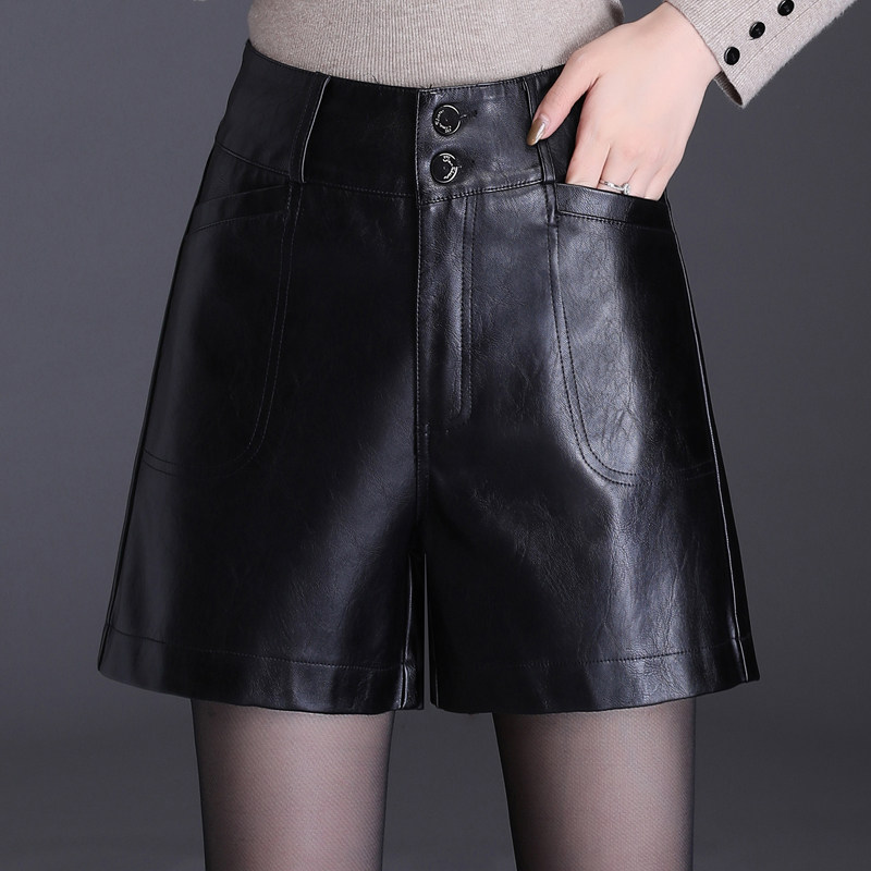 皮短裤女秋冬外穿2025新款高腰皮裤大码黑色阔腿显瘦宽松打底靴裤