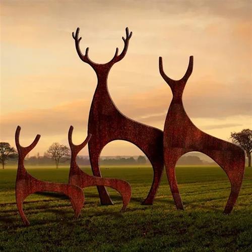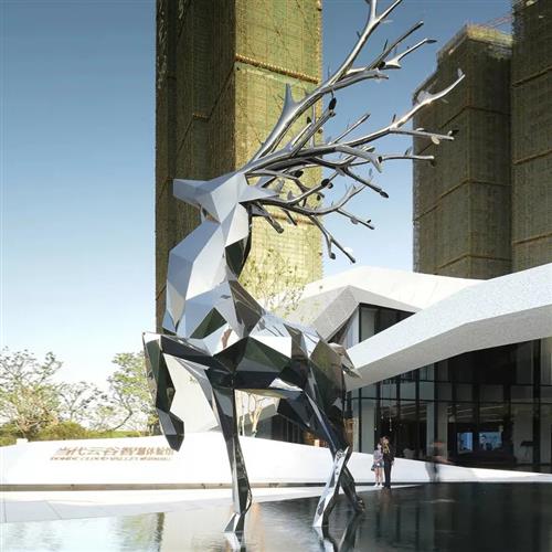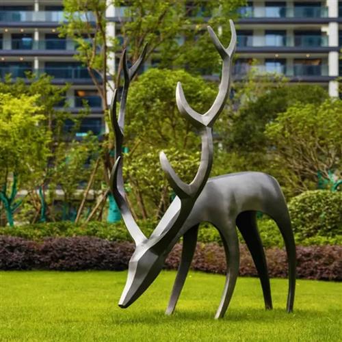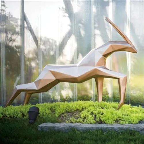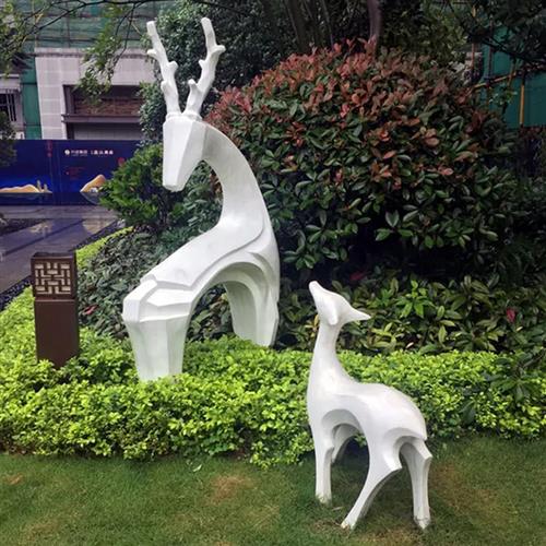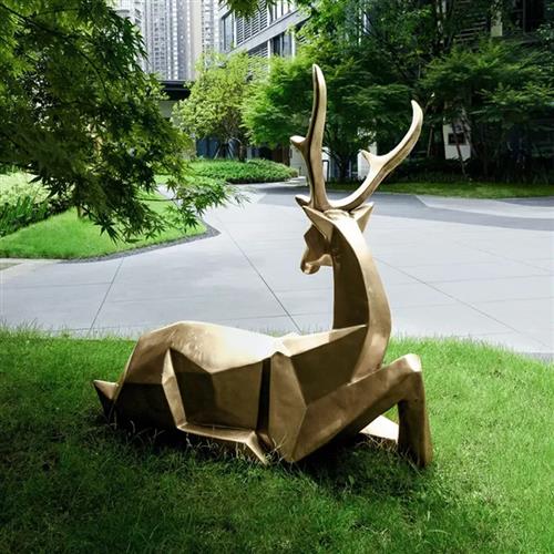 不锈钢户外仿真仿铜几何梅花抽象卡通镂空鹿玻璃钢雕塑艺术品摆件