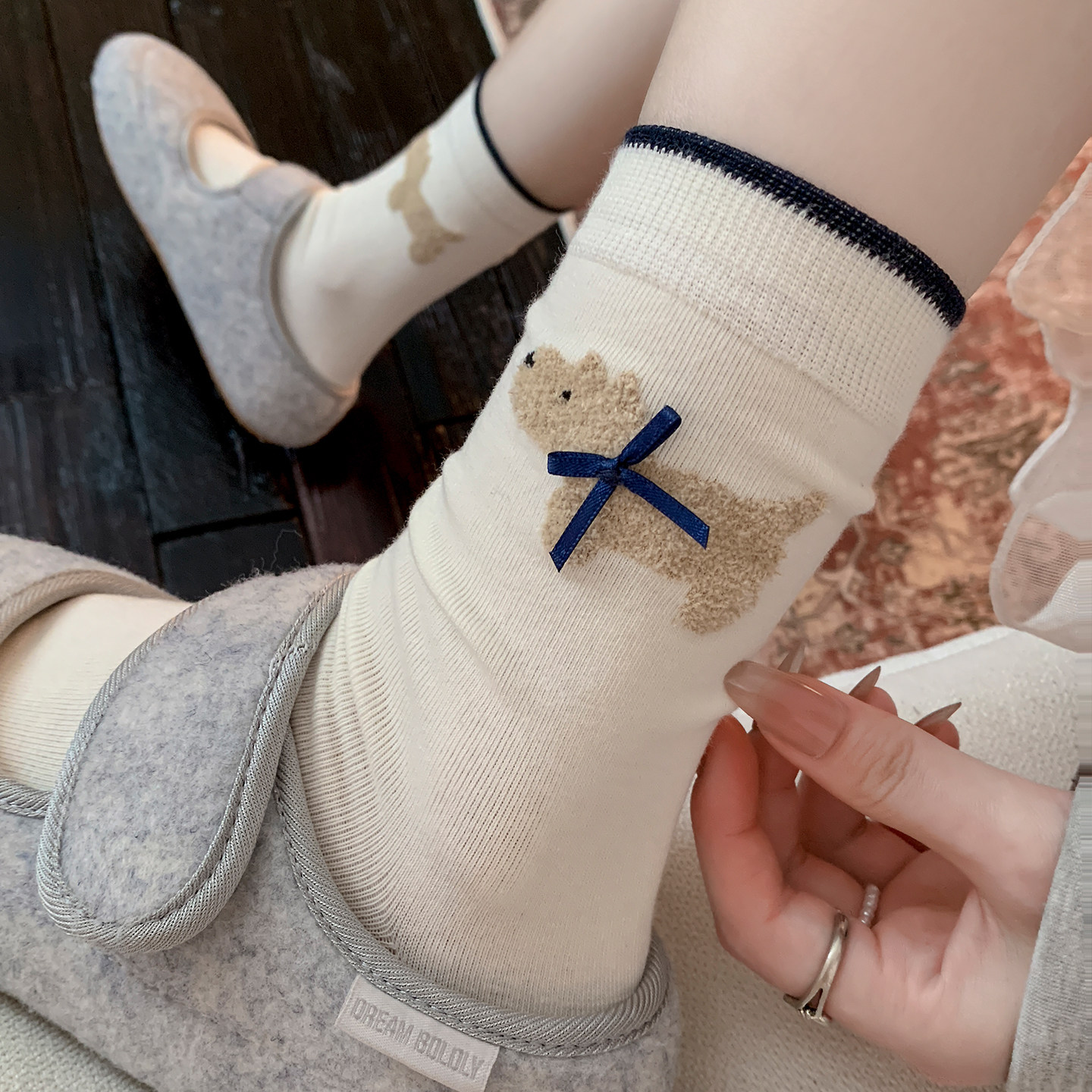 新款女士小熊可爱卡通袜子百搭时尚春秋款中筒袜子休闲商务小熊袜