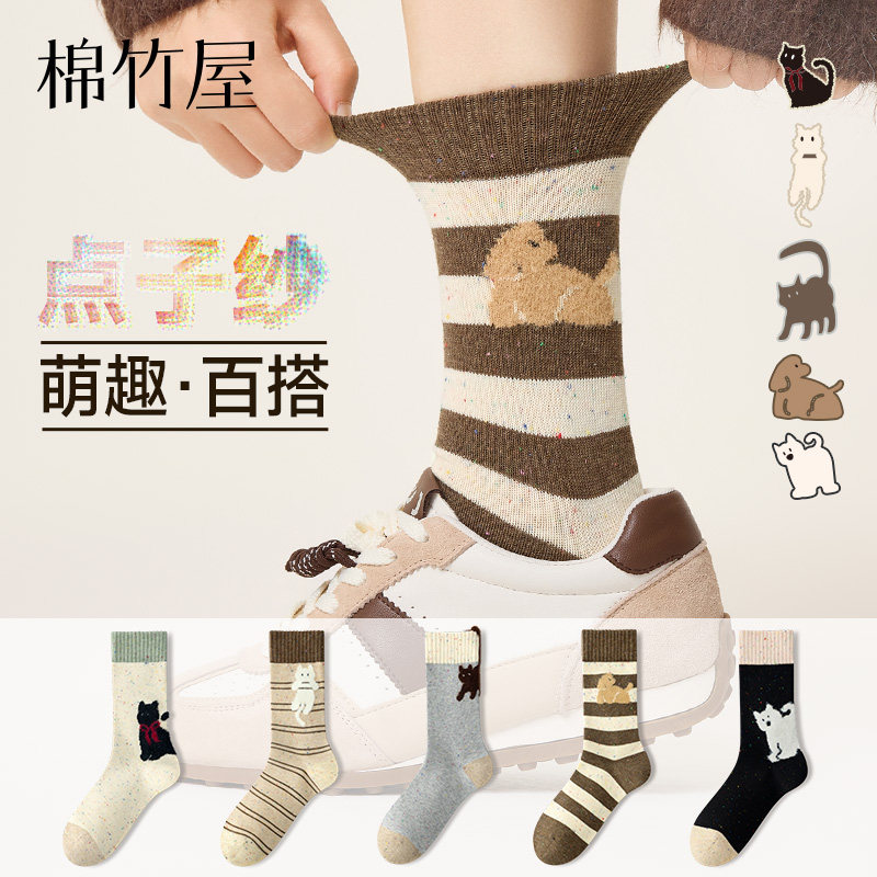 袜子女秋冬款中筒ins潮袜外穿2026新款爆款可爱卡通袜春秋棉袜子