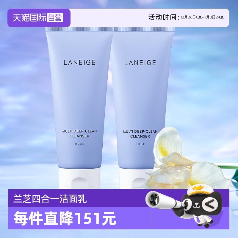 【自营】兰芝多效四合一洗面奶150g*2温和保湿深层清洁卸妆洁面