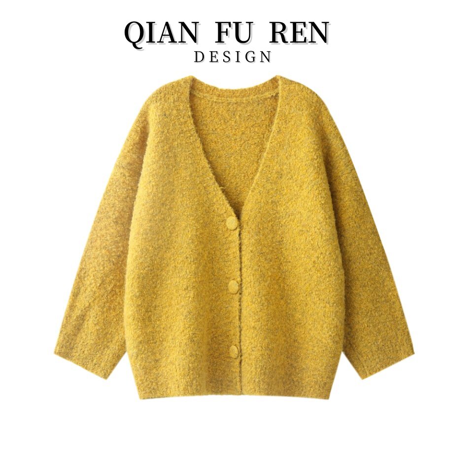 复古牛角扣羊毛混纺慵懒风加厚毛衣外套秋冬宽松简约百搭针织开衫
