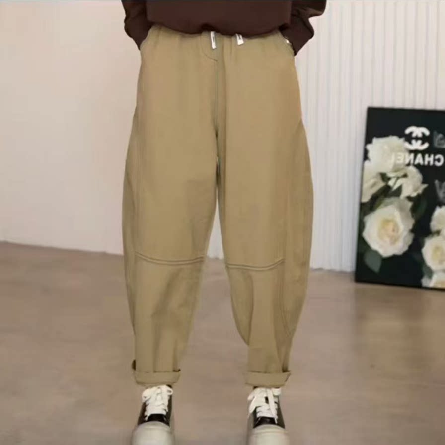 抖音爆款网红秋季新款高腰宽松洋气阔腿显瘦减龄超火哈伦裤灯笼裤