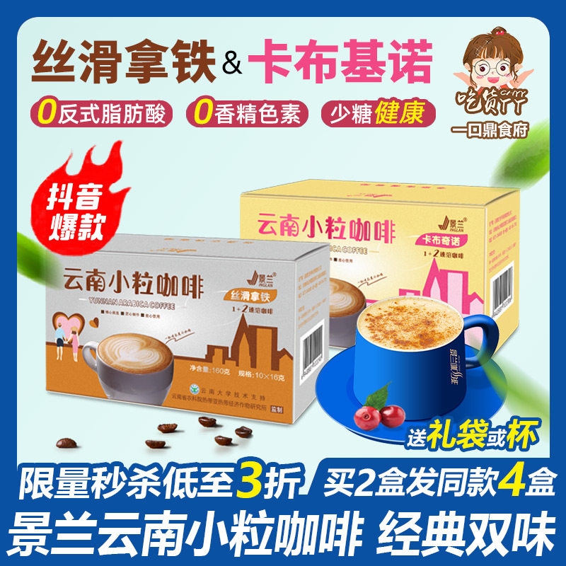 拿铁咖啡云南小粒特浓原味提神速溶卡布基诺三合一景兰官方随手礼