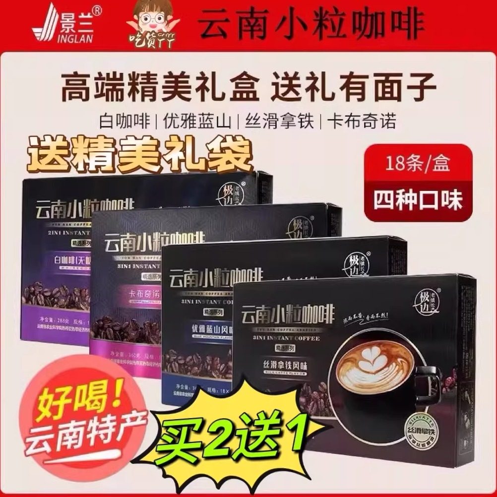 云南小粒咖啡特产拿铁卡布基诺蓝山无蔗糖白咖景兰伴手礼第3件0元