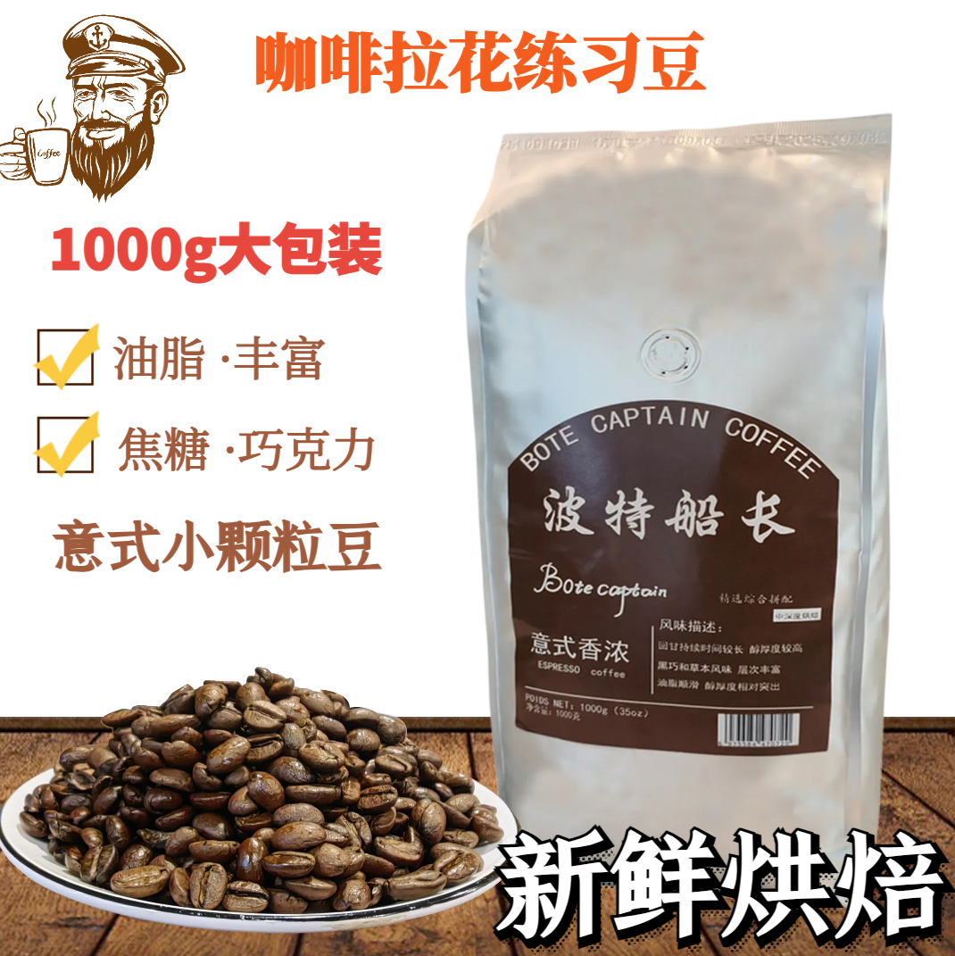 意式拼配香浓咖啡豆拉花练习卡布基诺拿铁新鲜烘焙油脂丰富1000g