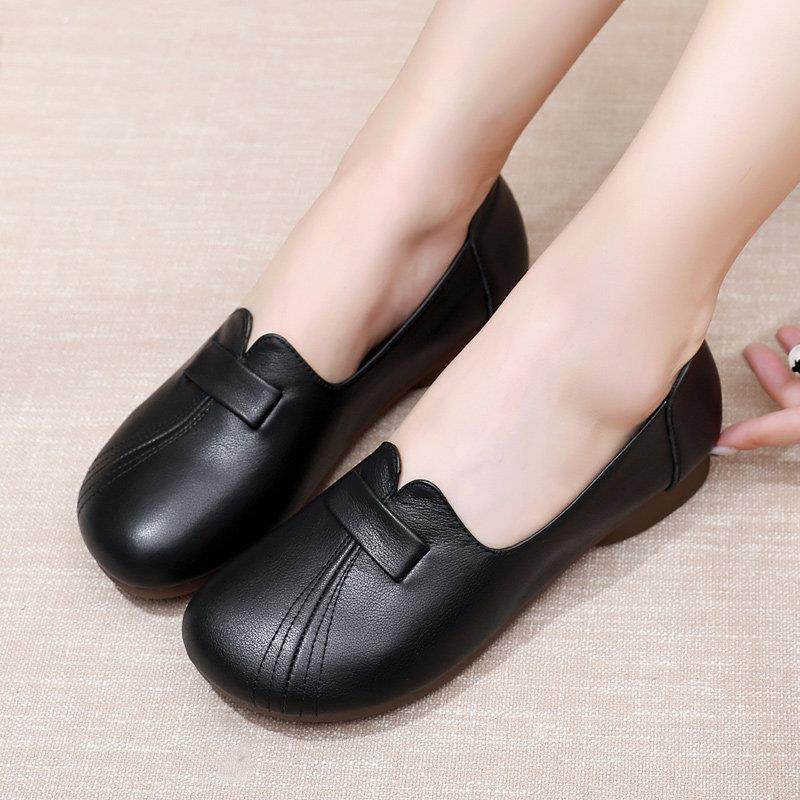 韩版潮牌妈妈鞋皮鞋全真皮软底舒适牛筋底女鞋覆古中平底休闲单鞋