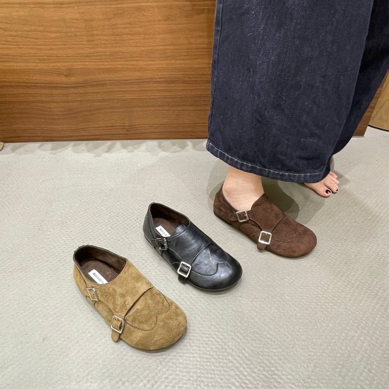 大东小皮鞋女鞋2025秋季新款韩版气质山茶花圆头低跟乐福单鞋0212