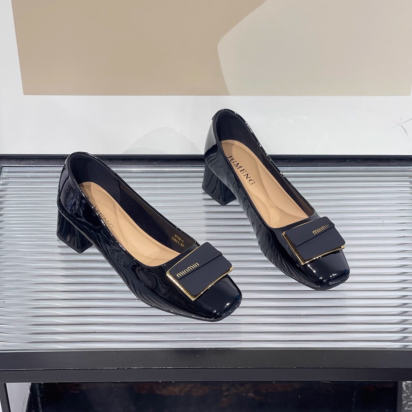 韩版方头漆皮浅口单鞋女2025年新款粗跟皮鞋时尚百搭通勤鞋不累脚