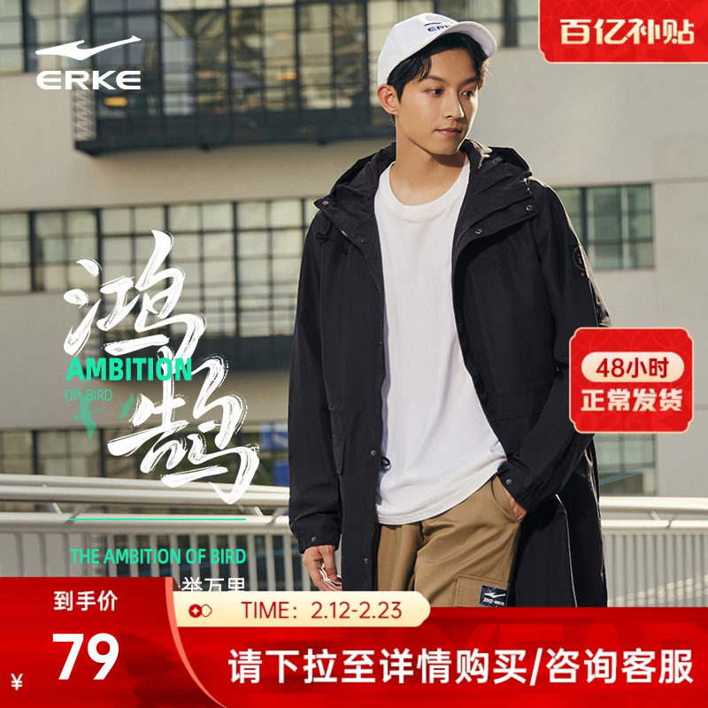 鸿鹄丨鸿星尔克风衣男春秋男士国潮复古中长款防风运动外套大衣男