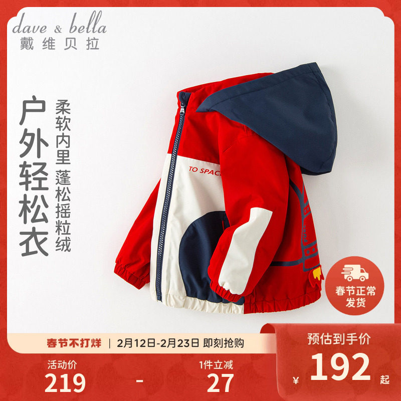 戴维贝拉男童棉袄外套春装棉衣儿童外出防风衣男宝帅气红色拜年服