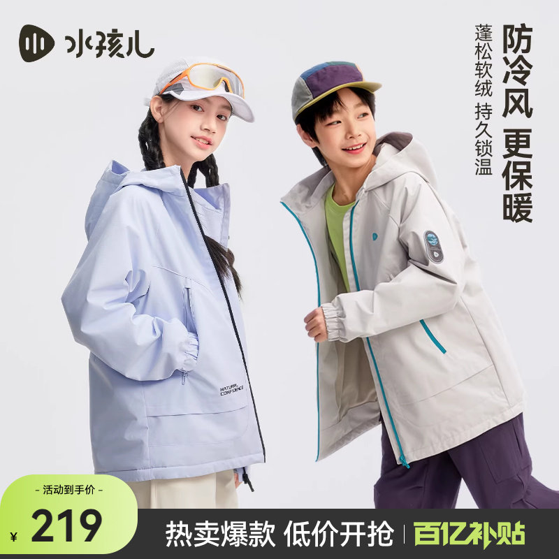 水孩儿童装外套加绒2026新款春装男女大童厚风衣三防户外连帽上衣