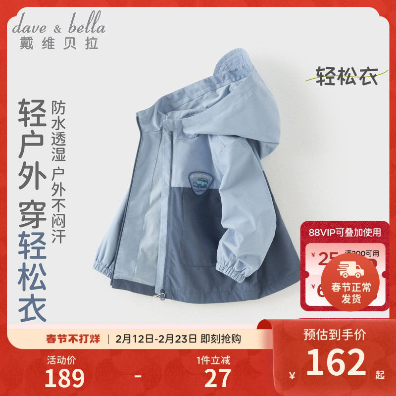 戴维贝拉风衣外套男童2026春装新款儿童防水夹克外出男宝A类上衣