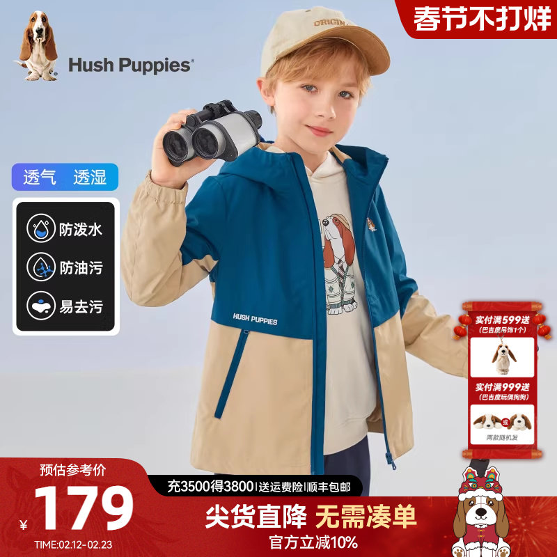 暇步士童装儿童风衣春秋装新款到男大童户外运动上衣三防连帽外套